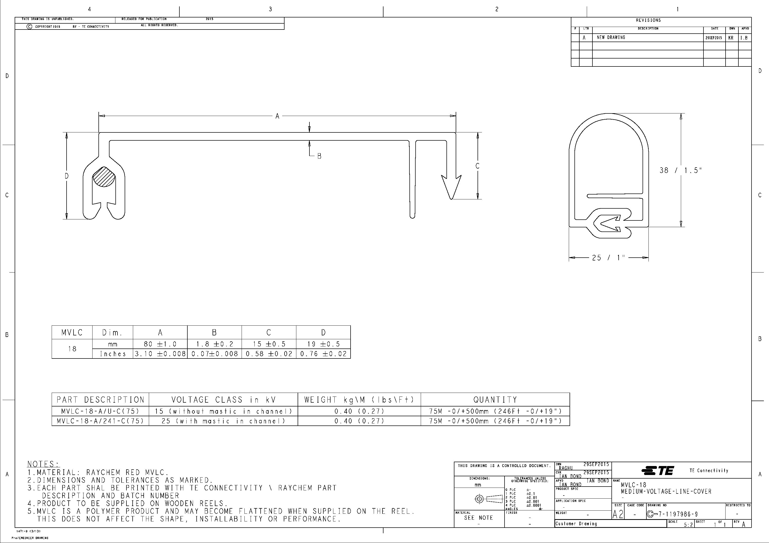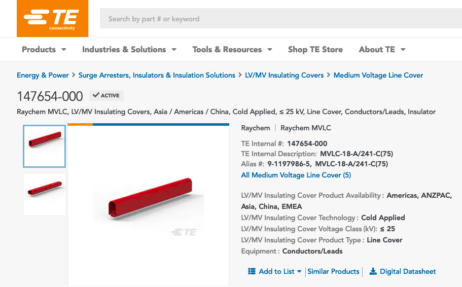Rollo de 75 mts Tension hasta 25 Kv Resistente a la abrasion, Rayos UV, Intemperie Mod 147654-000 Raychem