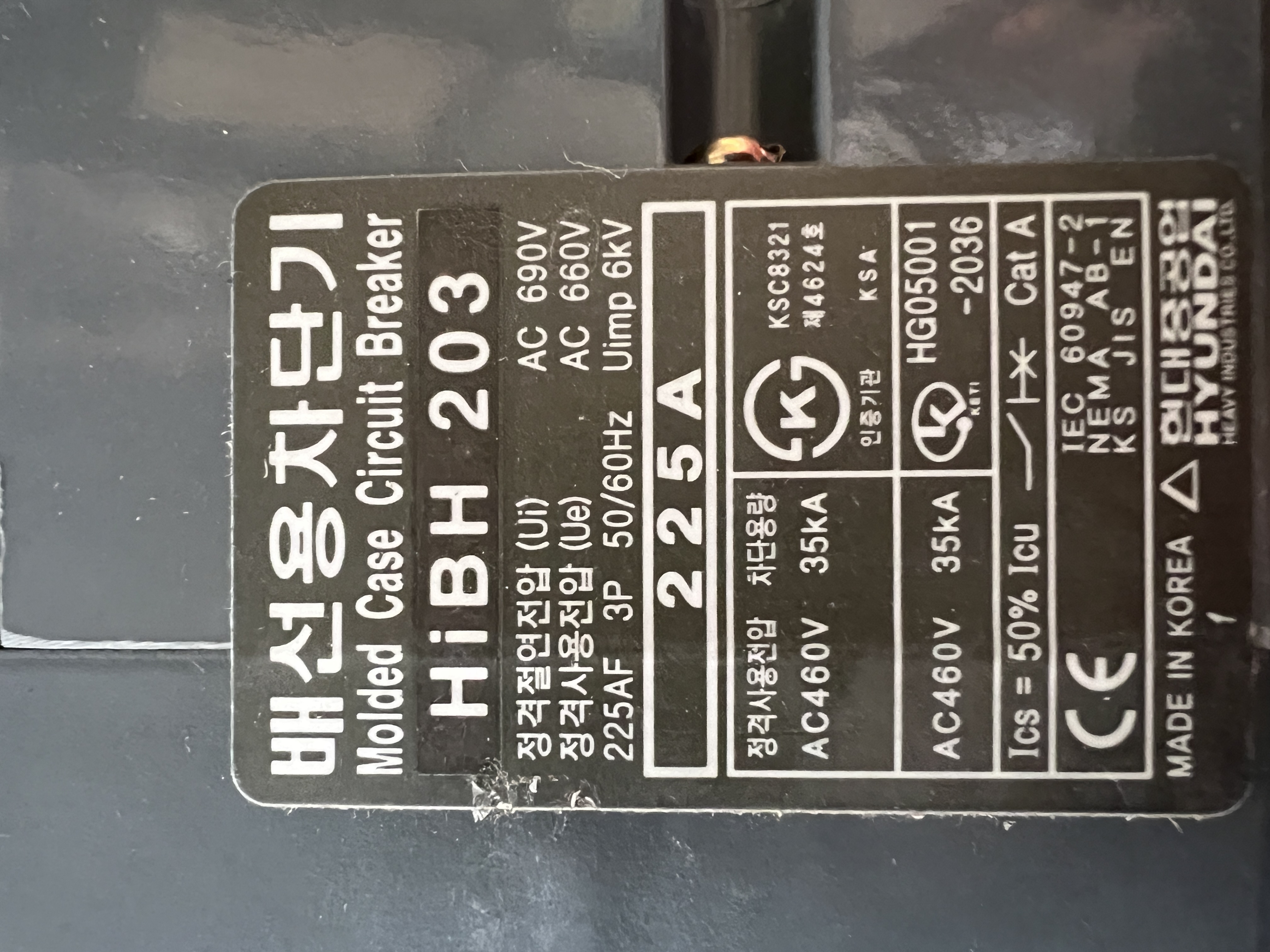 Model : HiBS 203 Type : MCCB Brand : Hyundai Made in Korea 225 AMP